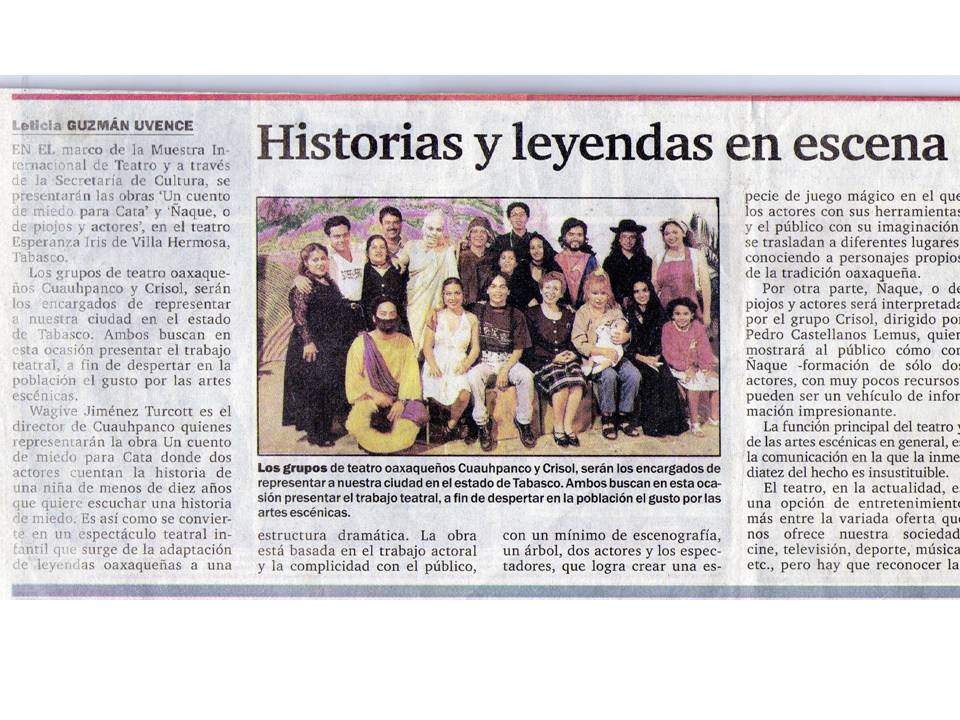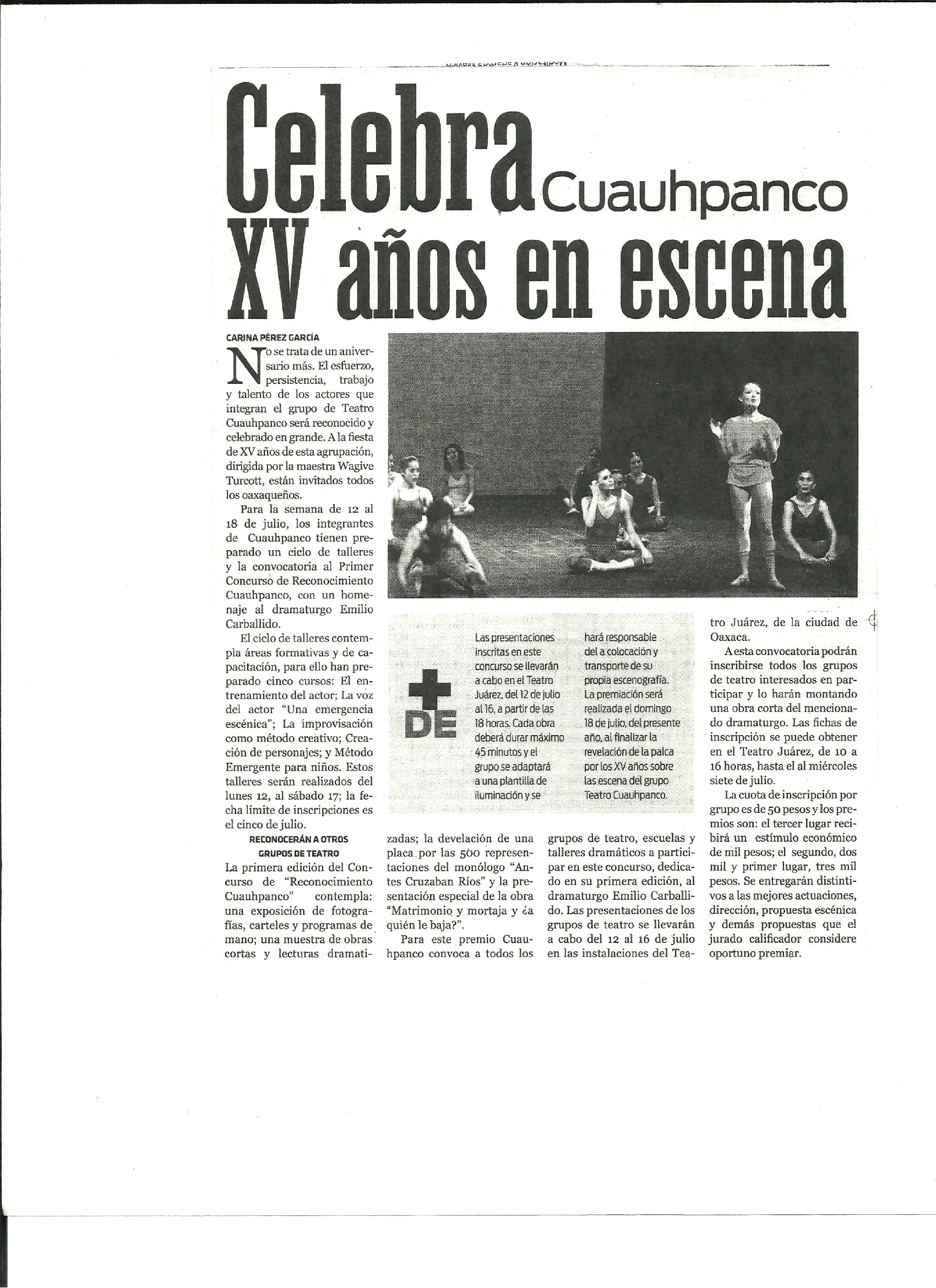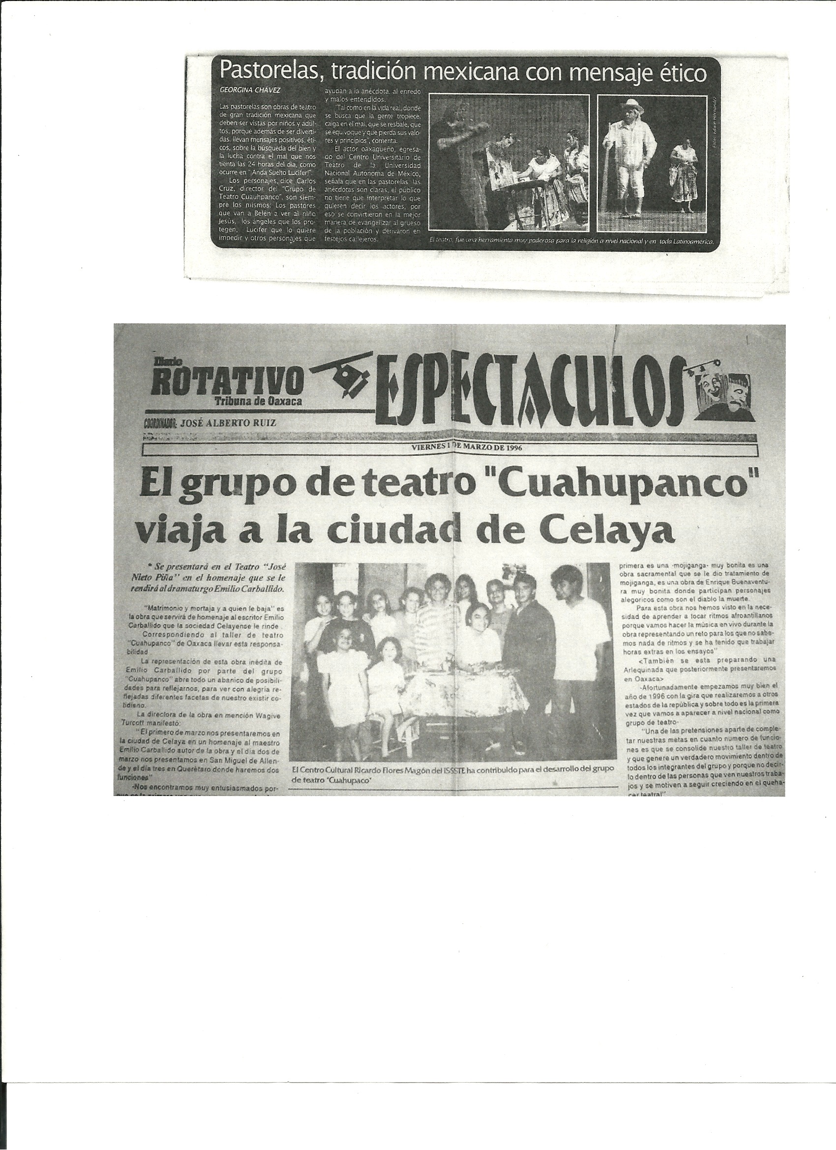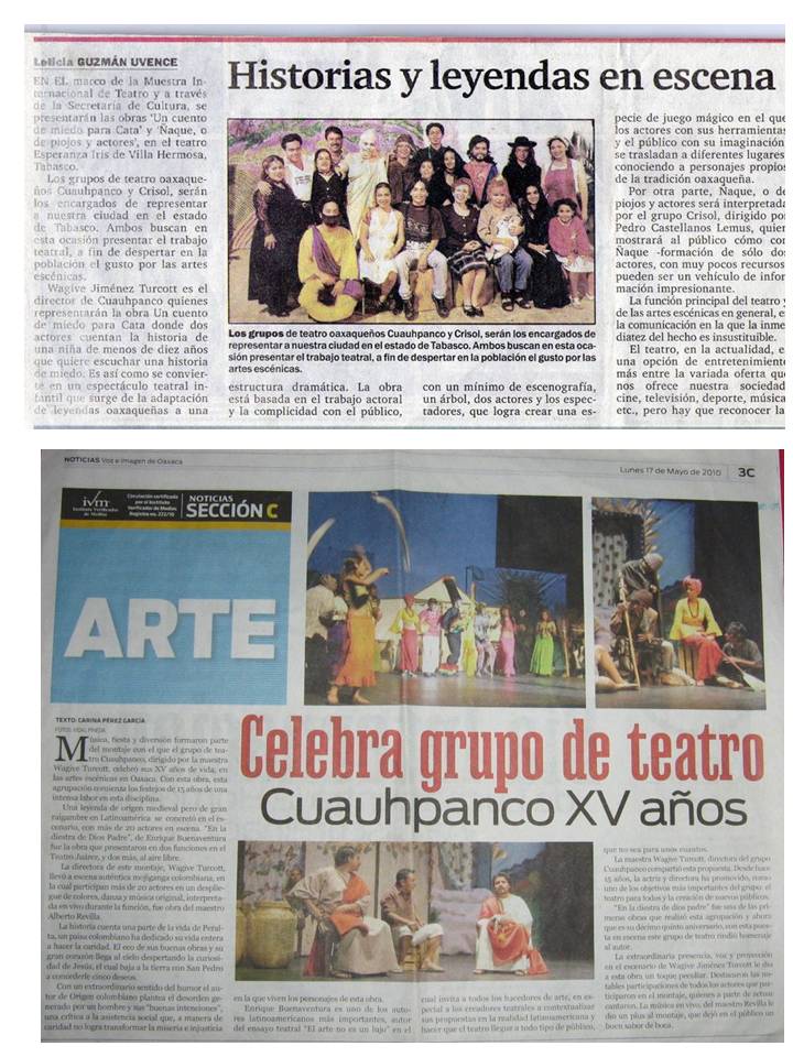 Una colección de artículos y notas periodísticas que documentan la trayectoria de Cuauhpanco Teatro a lo largo de los años.