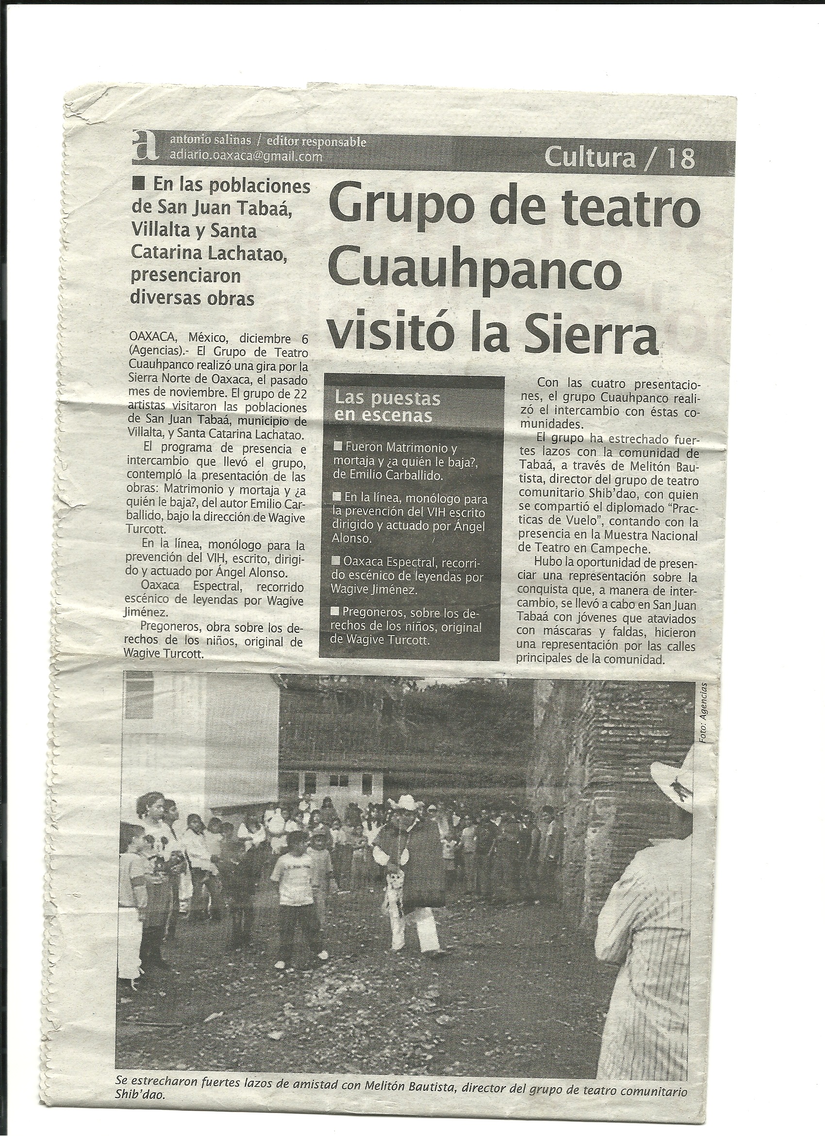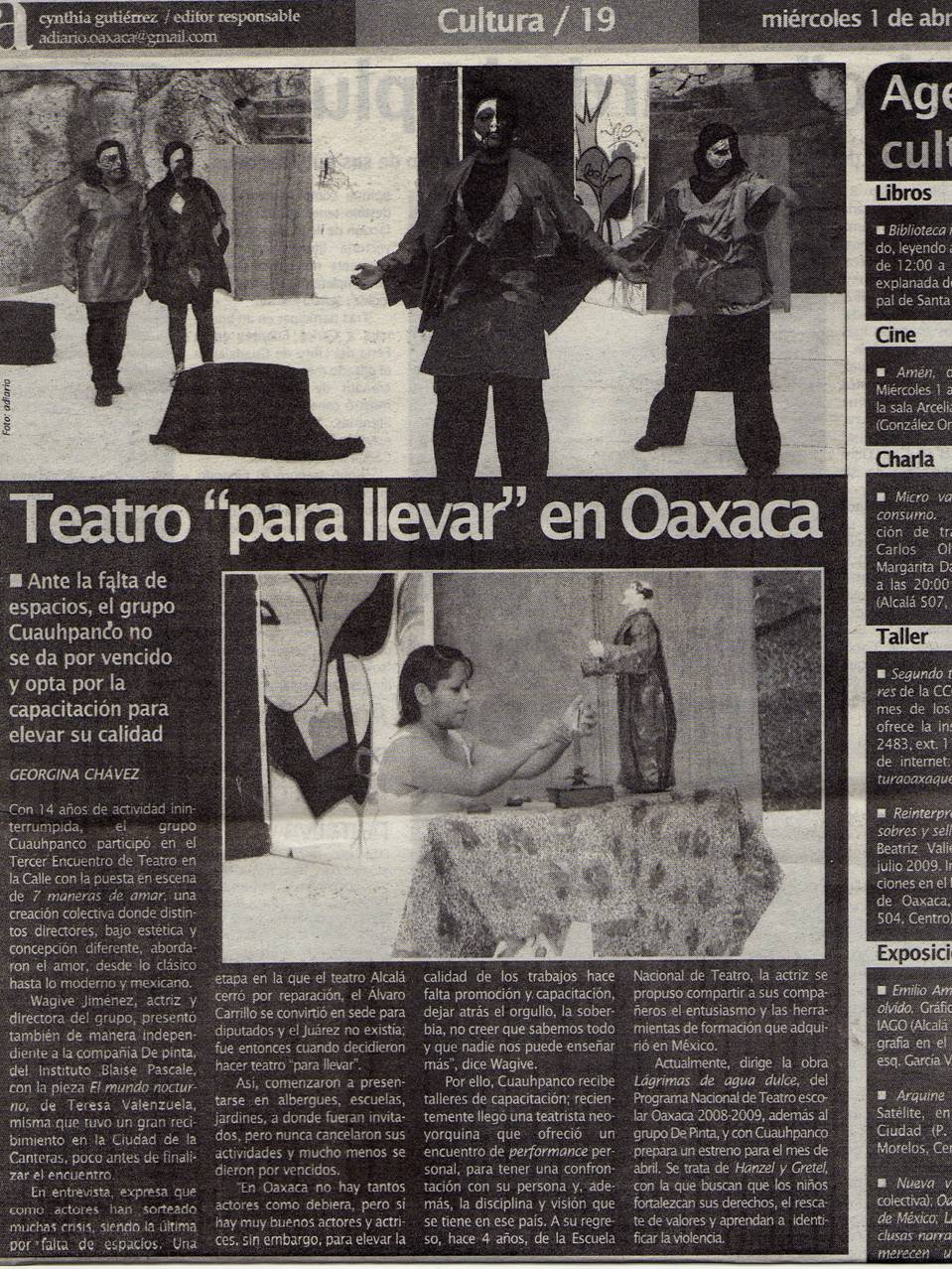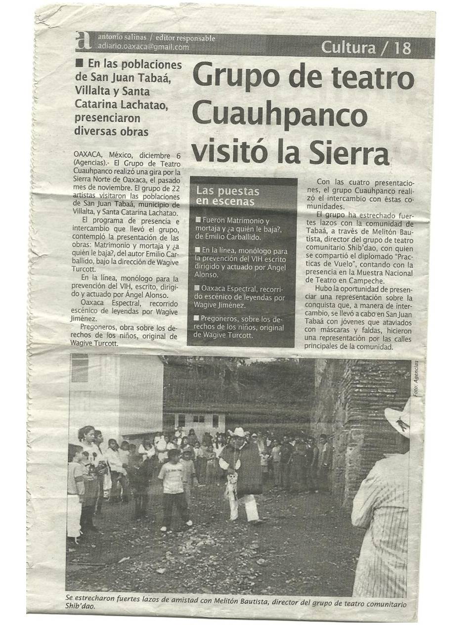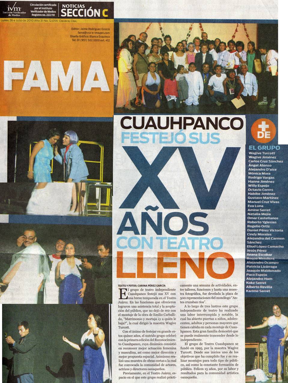 Una colección de artículos y notas periodísticas que documentan la trayectoria de Cuauhpanco Teatro a lo largo de los años.